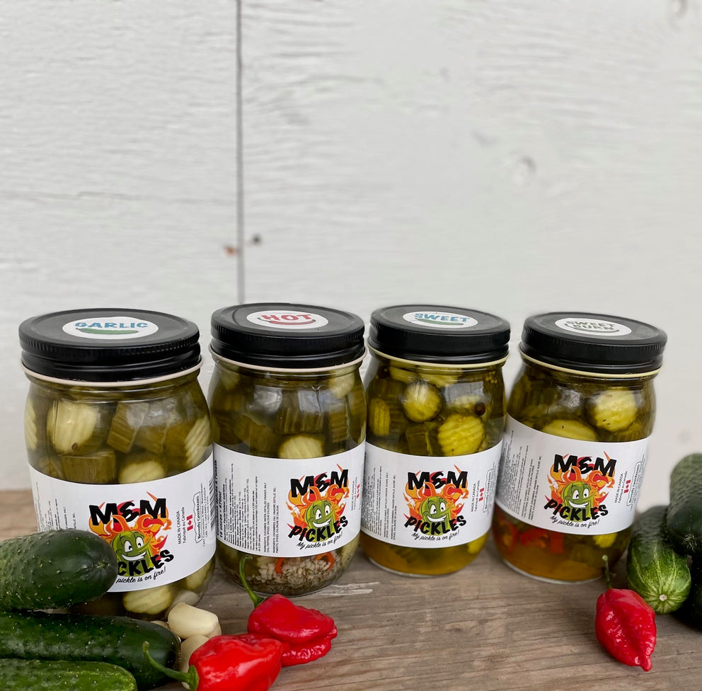 We take fresh cucumbers directly from our greenhouses to create specialty-flavoured gourmet pickles, including Garlic Dill, Hot Garlic, Sweet, and Sweet Burn. Proudly grown and processed by hand right on the farm, each jar of M&M Pickles captures the fresh, local quality you can taste.