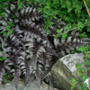 Athyrium niponicum var. pictum 'Burgundy Lace'- Fronds emerge from the ground in the spring a deep burgundy-purple colour