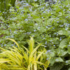Brunnera macrophylla 'Jack Frost'- Blue flowers resemble those of forget-me-nots