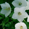 Campanula carpatica 'White Clips'- White cup-shaped flowers rise slightly above the foliage