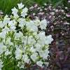 Campanula persicifolia 'Takion White'- Large, open, outward-facing, white flowers
