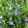 - Deep blue star-shaped flowers rise above the mound of foliage