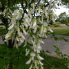 - Long pendulous wisteria-like clusters of fragrant white flowers
