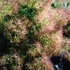 Cotinus coggygria 'Young Lady'- Even when the plant is young, small, cloud-like clusters of purplish-pink "smoke" appear above the leaves