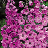 - Grows best in a fertile, well-drained, average to moist soil, in full sun. Shelter from strong winds is recommended. May require staking when the plant is about 30-40 cm tall. When new shoots appear in spring, remove all but two or three of the strongest stems for good, quality, flower spikes. On more established plants, leave five to seven, strong shoots. Deadheading may produce later blooms. Delphiniums can be short-lived (2-3 yrs), although the 'New Millennium Series' have been bred to withstand more heat and humidity and are cold-hardy.