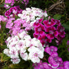 Dianthus barbatus 'Midget Mix'- Dense clusters of mixed colours of red, white and pink flowers top short stems