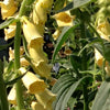 - Well-spaced pale yellow bell-shaped flowers with brown freckles