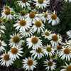 Echinacea purpurea 'White Swan'- Clean white flower with downward-facing petals and a large coppery cone
