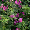 - Rich magenta flowers contrast brightly with the leaves