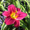 Hemerocallis 'Little Business'- A rebloomer with red flowers contrasted by green throats