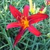 Hemerocallis 'Sammy Russell'- Dark crimson-red with yellow throat
