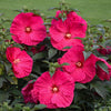 Hibiscus x 'Summer in Paradise'- Deep red buds opening to hot cerise-red flowers