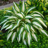 Hosta 'Cool as a Cucumber'- Cascading mound of white-centred leaves with wide green margins