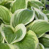 Hosta 'Diana Remembered'- Wide mound of dark green leaves with a lighter margin