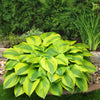 Hosta 'Velvet Moon'- Sport of Abiqua Moonbeam: Large smooth thick gold leaves with jagged green centre patch