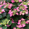 - Bold Lacecap blooms on bright burgundy stems