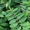 - Smooth oval green leaves on woody branches