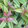 Leucothoe fontanesiana Scarletta® ('Zeblid')- Fragrant white bell-shaped flowers appear under the leaves