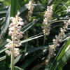 Liriope muscari 'Monroe's White'- Showy whorled white flowers on short spikes, just proud of the body of the plant