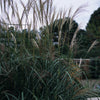 Miscanthus sinensis 'Goliath'- Green leaves with a silver midrib are 2.5 cm wide, arching gracefully on sturdy upright stems