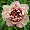 Paeonia itoh 'All That Jazz'- Semi-double to double flowers of pale apricot with scarlet splashes
