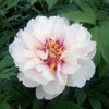 Paeonia itoh 'Cora Louise'- Full semi-double white flowers with a deep lavender centre