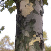 - Tan-gray bark exfoliates in patches, revealing inner bark of white, yellow and green