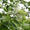 Prunus virginiana- Small fragrant white or pink flowers emerge simultaneously with the leaves