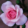 - Clusters of lightly fragrant semi-double rose-pink flowers