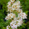 - Bottlebrush-like spikes of tiny white to white-pink flowers