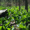 Symplocarpus foetidus- Maroon spathe opens on one side to reveal green-yellow flowers (spadix)