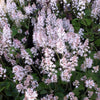 - Pink buds open to tiny star-shaped white flowers forming spike-like racemes
