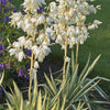 Yucca filamentosa 'Colour Guard'- White bell-shaped flowers on semi-woody stems