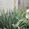 - Evergreen leaves are sword-shaped and tinged green to blue